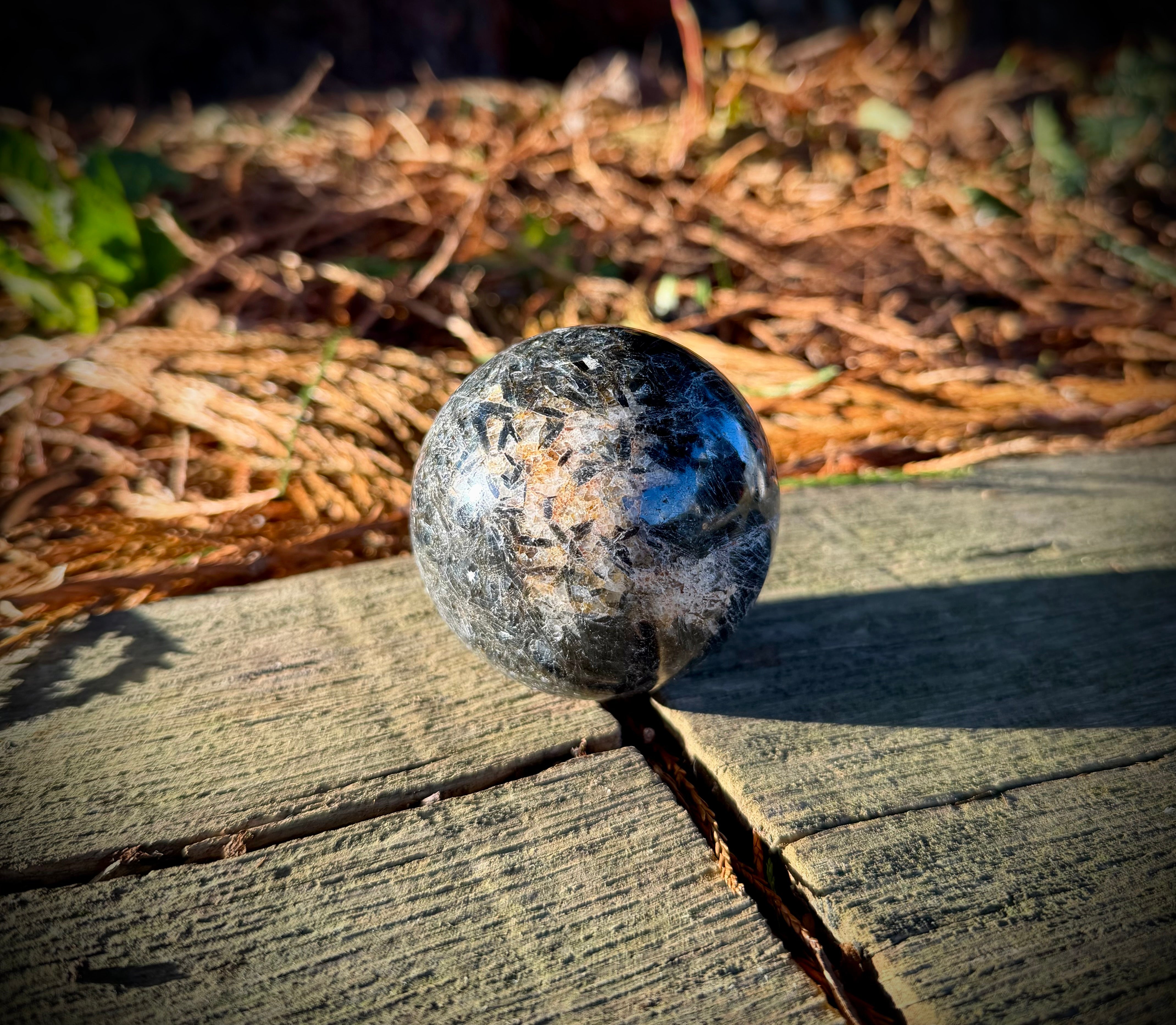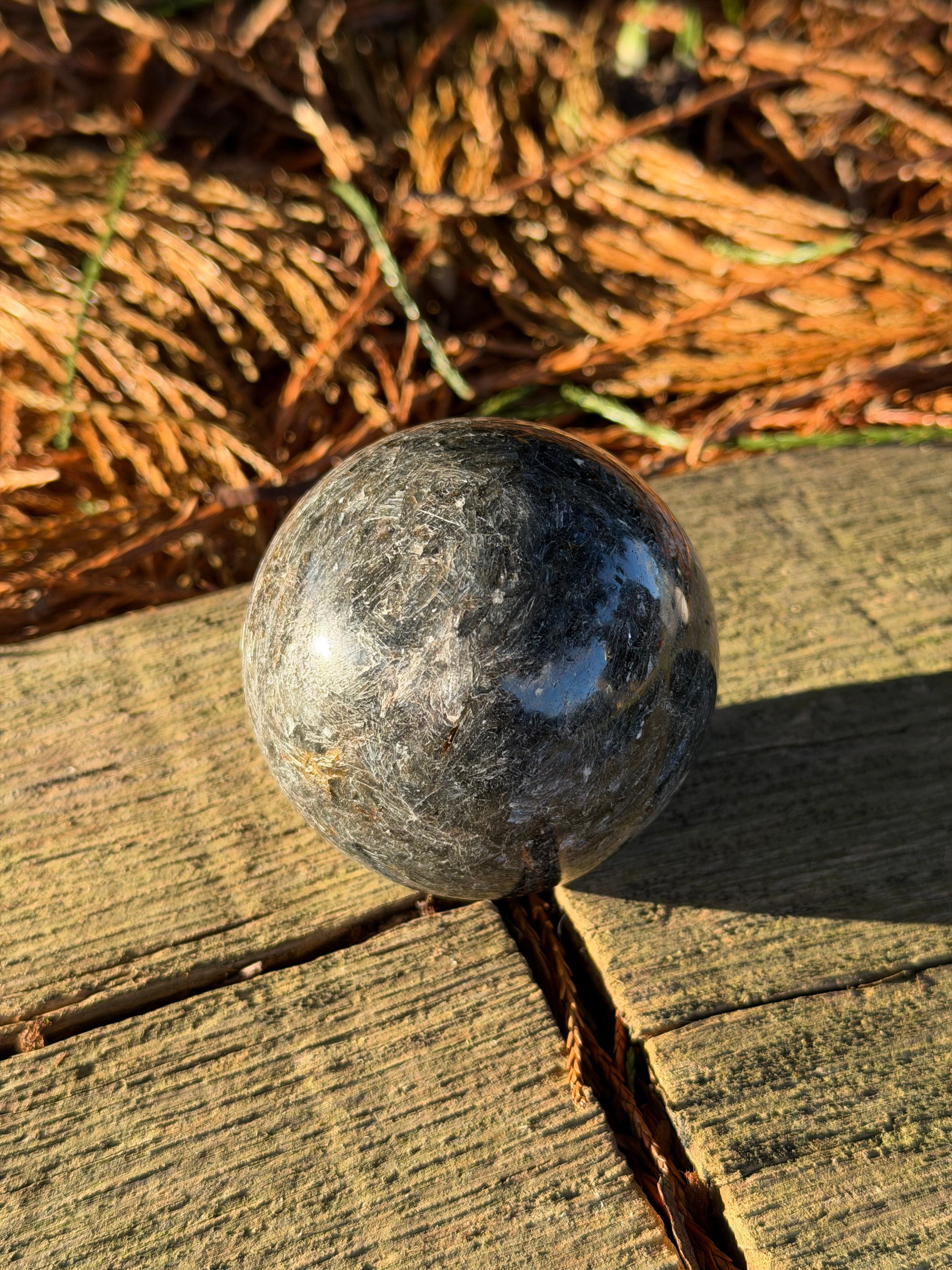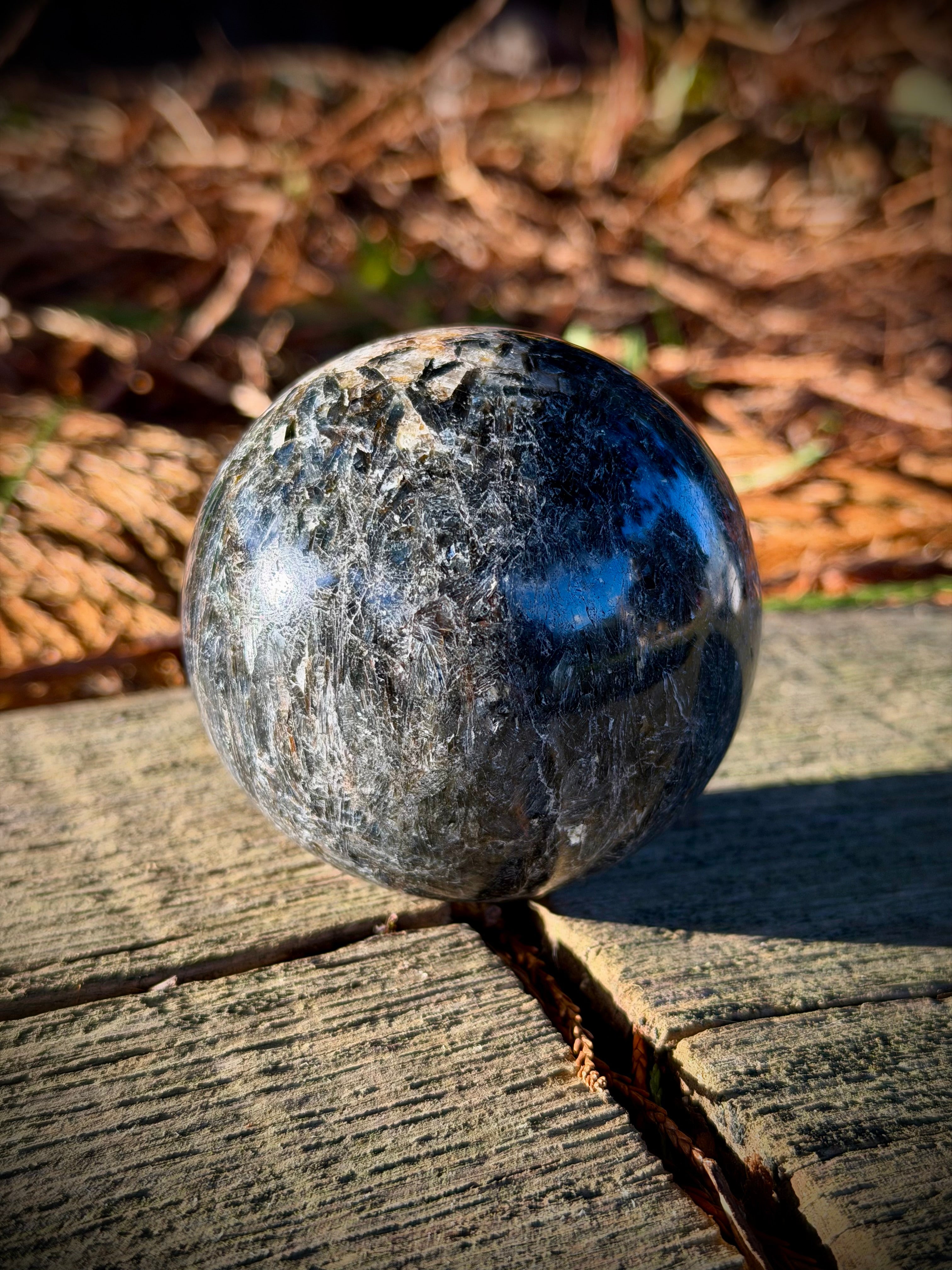 Black Kyanite in Quartz Sphere